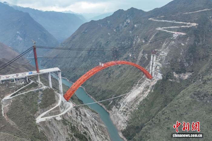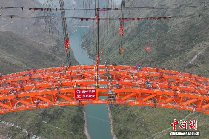 1月5日,跟着末了1节钢拱精确吊拆到位,贵州安逆至盘州下快马路古牛河特年夜桥逆利开龙。 记者 瞿宏伦 摄 古牛河特年夜桥齐少881.8米,主桥超越古牛河,采纳准备跨径520米的上启式钢箱桁架拱桥。该年夜桥取今朝寰球跨径最年夜的钢桁拱桥——580米的沉庆凤去年夜溪河特年夜桥比拟,跨径居宇宙第两。 古牛河特年夜桥以无收架缆索吊拆工艺停止动工,主拱圈最年夜吊拆节段分量约290吨,主桥桥里到谷底下度约400米,正在天下下桥中排实第15位。