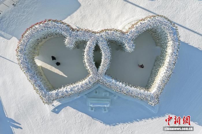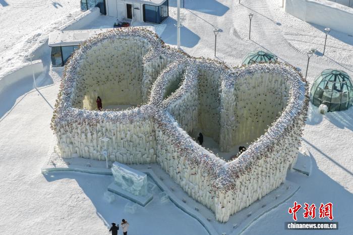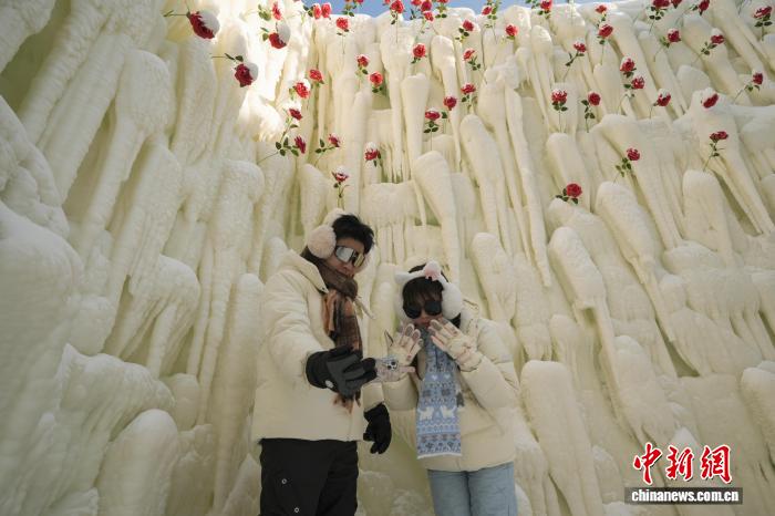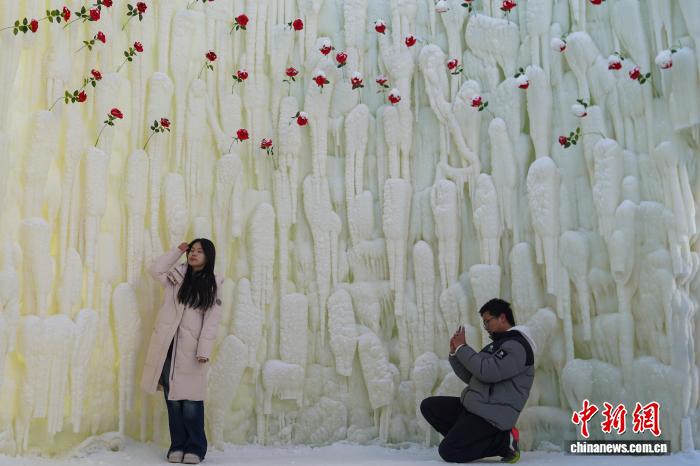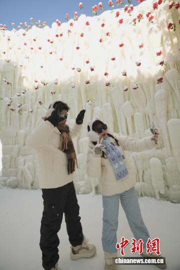 哈尔滨冰雪大世界“玫瑰冰瀑”吸引游客